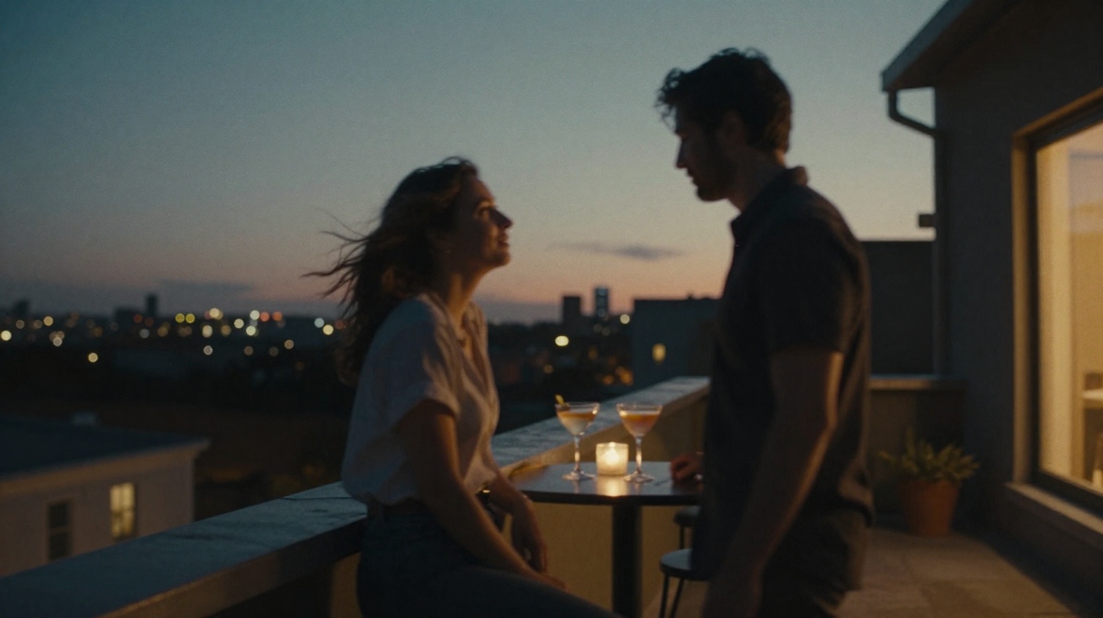 It was a warm summer evening in the city when Sarah watched the sunset on the roof terrace of her apartment. A slight breeze played with her hair as she sipped on her cocktail. Her attention was suddenly diverted by a man who was climbing the stairs to her floor. His strong shape and self-confident appearance made her heart beat faster.